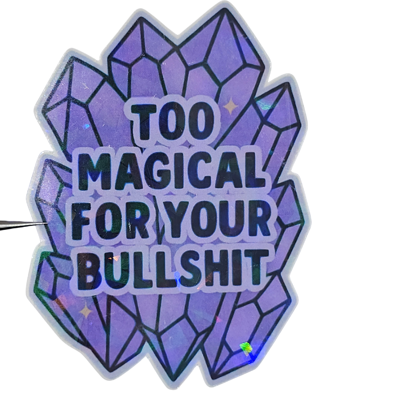 Too Magical for Your Bullsh*t” Holographic Crystal Sticker – Bold Spiritual AF Vibes